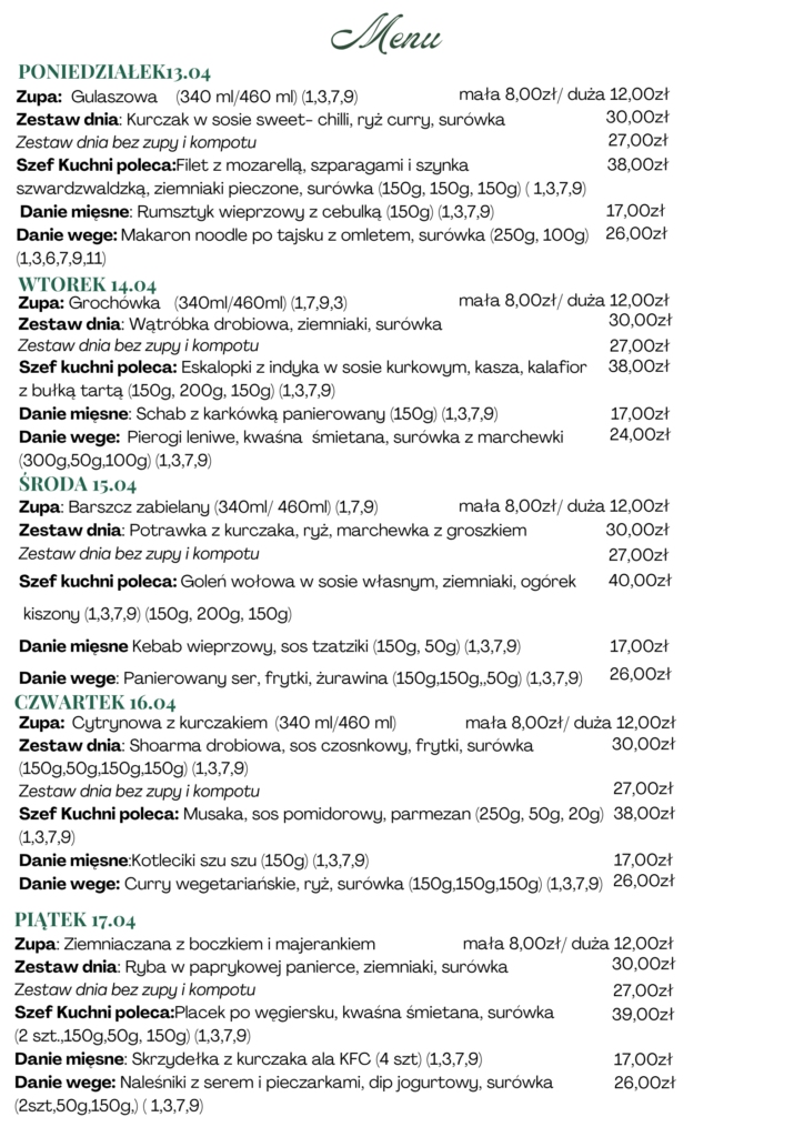 * OFERTA DOTYCZY CATERINGU ZAMAWIANEGO NA WYNOS. IMPREZY OKOLICZNOŚCIOWE W LOKALU WYCENIANE SĄ INDYWIDUALNIE